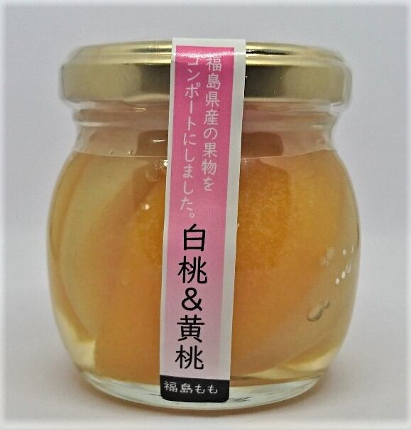 福島県産のおいしい白桃と黄桃をコンポートにしました。そのまま食べても、ヨーグルト・ケーキのトッピングなどいろいろお試しください。