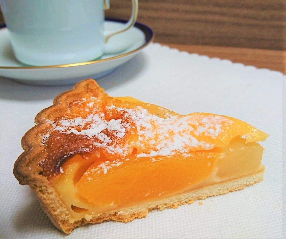 福島県産の黄桃をふんだんに詰め込んだクッキー生地のタルトに特製カスタードを流し込み焼き上げました。